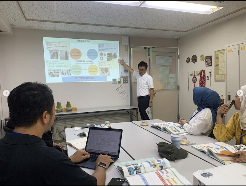 Selanjutnya setelah mempelajari posisi ESD dalam SDGs, delegasi memasuki materi yang kedua yaitu “Pengenalan kegiatan Asosiasi Kebersihan Lingkungan Kota Ube” dimana diketuai oleh Mr. Wakatabe pada materi ini lebih ditekankan kepada masyarakat tingkat RT/RW untuk membersihkan sampah di sekitar lingkungan kota Ube selain itu juga ada pembersihan sungai dan pelepasan ikan di sungai shioda.